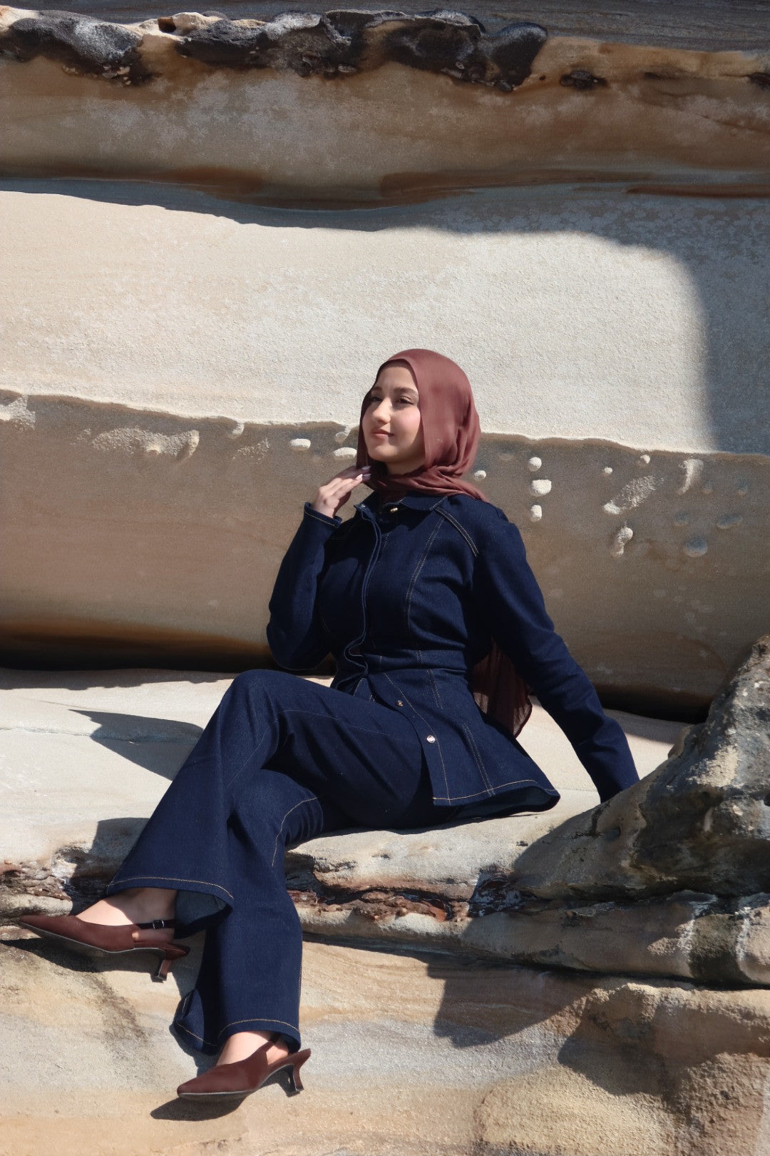 The AIRA Jean is a fitted, flared denim pant designed to hug your figure in all the right places. With gold button detailing and just the right amount of stretch, it flatters your waist, avoids gapping, and delivers both comfort and confidence.