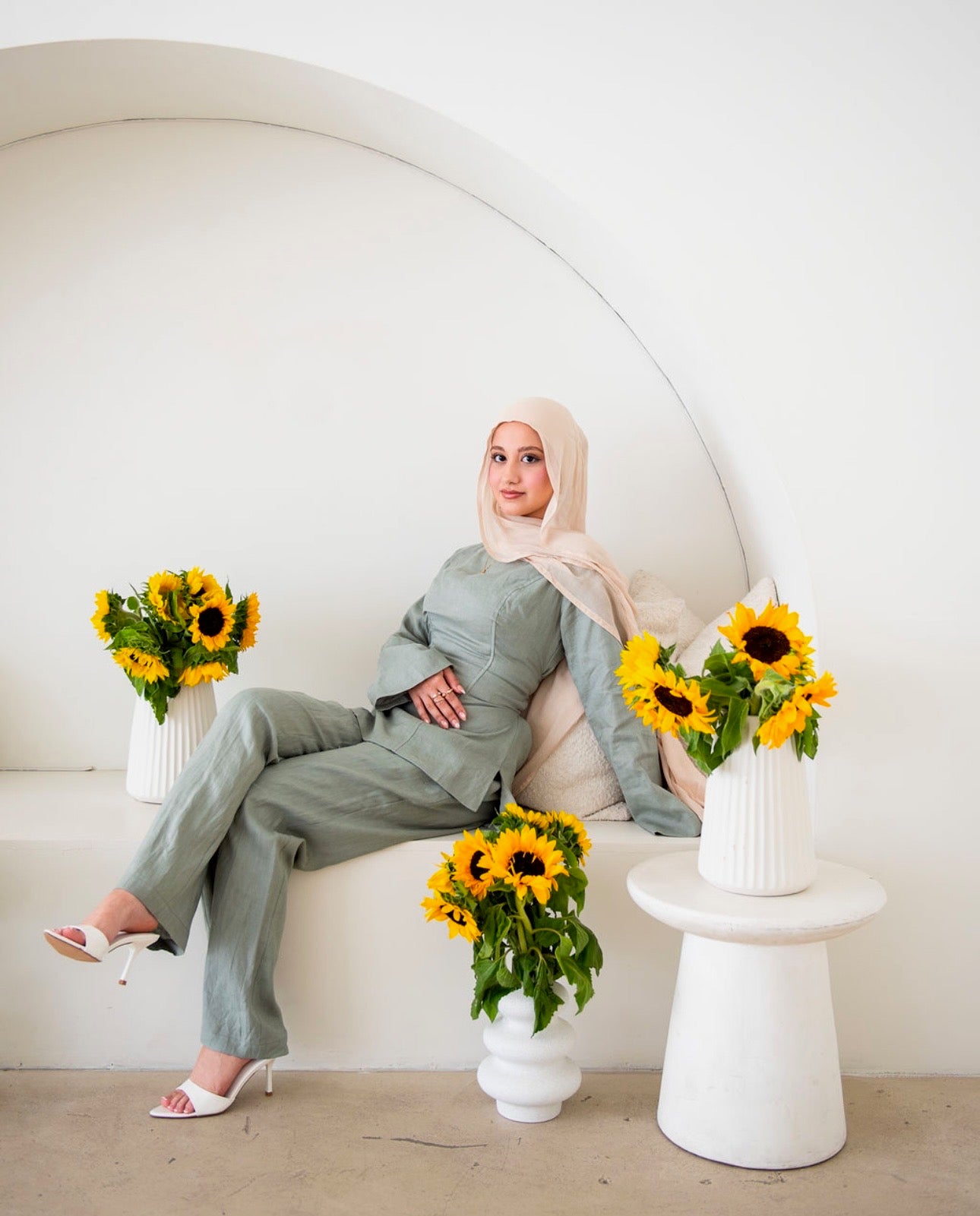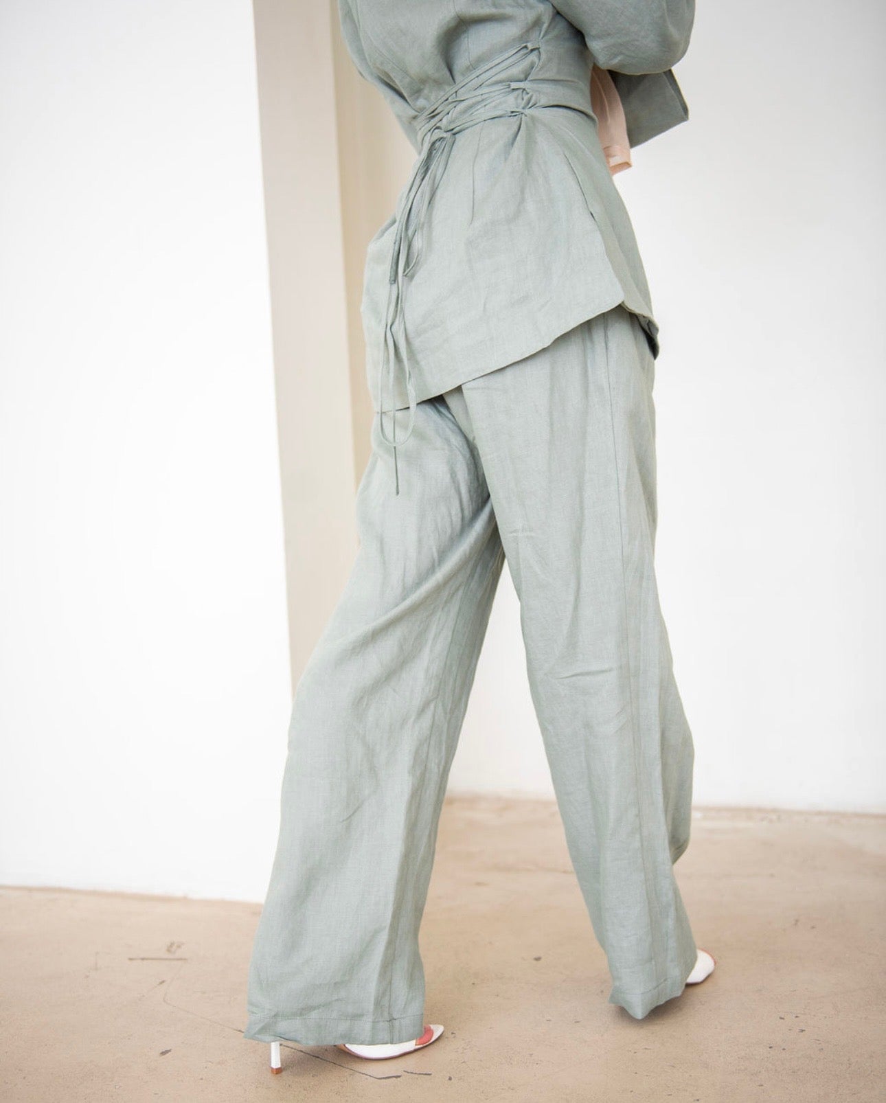These linen sage pants are crafted to perfection made from %100 double-lined linen. featuring a drawstring waistband for a comfortable, adjustable fit, they flatter your body while offering a relaxed, stylish look.